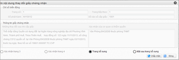 Sau khi thực hiện biến động người dùng sẽ thấy một danh sách nội dung thay đổi. Kích chọn vào nội dung thay đổi muốn in và bấm chọn vào nút lệnh In xác nhận